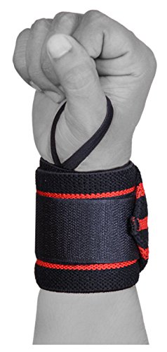 EVO Fitness Elasticizzato Gym Fascia Sollevamento Pesi Supporto per Polso Esegue Il Wrapping di Guanti - Rosso