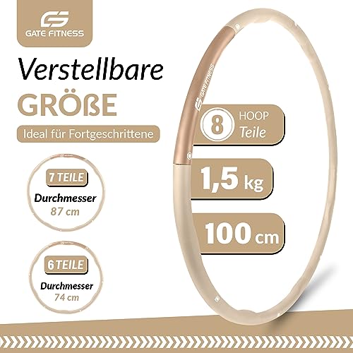 GATE FITNESS Hula Hoop - Pneumatico dimagrante per adulti e bambini [1,2 kg/1,5 kg/2 kg] | 6 fino a 8 segmenti Hoola con design ondulato, per principianti e avanzati, pneumatici fitness con schiuma