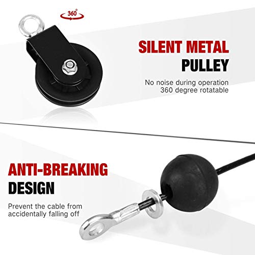 2. Le pulegge professionali di alta qualità garantiscono l'assenza di rumore extra durante il funzionamento: cavo ad alta resistenza da 70 pollici e 90 pollici, mantiene la forza, la durata e il funzionamento regolare. Perno di carico in acciaio aggiornato: carico massimo di peso fino a 280 libbre.