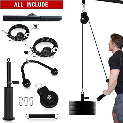 Fitness LAT Lift Pulley System Con Cavo Macchina, Perno Di Caricamento Aggiornato Per Tricipiti Pull Down, Macchina A Doppio Cavo (70 '' E 90 ''), Kit Di Attrezzature Per Funi Portatili