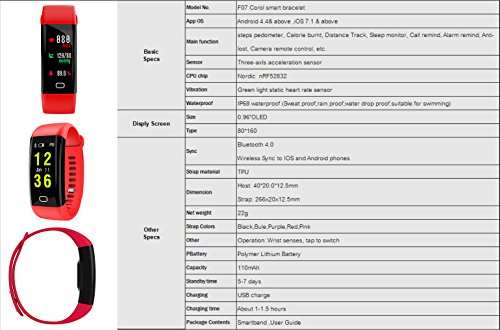 Fitness Tracker, Idoosmart ossigeno del sangue pressione cardiofrequenzimetro Activity Tracker, impermeabile IP68 Smart Wristband, Bluetooth attività wireless bracciale con cinturino di ricambio per smartphone Android e iOS,, donna, F07HR-Black+red(band)