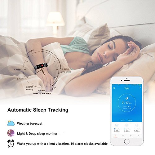Sano Assistant & Auto Sleep Monitor: 24h monitoraggio continuo automatico della frequenza cardiaca in tempo reale, è possibile monitorare il vostro corpo Health condizione in qualsiasi momento. Assicuratevi che il vostro telefono vicino al fitness tracker, altrimenti la misura potrebbe risultare compromessa. Ampia profondità analizzare i dati come quelli del sonno veglia e sonno, ti aiuta a migliorare la qualità del sonno, ti accompagnerà ogni notte di sonno. Pista auto Sleep e sincronizzare i dati per vedere il giorno successivo in app