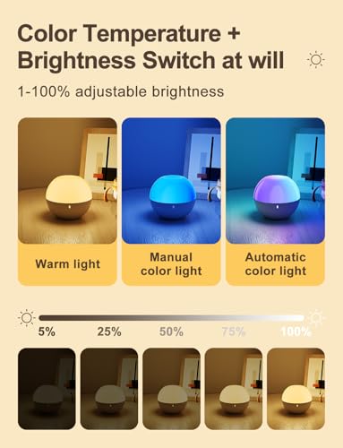 【Bella luce notturna bambini】- Questa luce notturna bambini è disponibile in una varietà di luminosità e colori, luce calda (2700K) - luce fredda (6500K), RGB dimmerabile, in modalità RGB, la luce notturna neonato passerà automaticamente attraverso 7 colori. La luce colorata può promuovere l'osservazione, il pensiero e la memoria dei bambini, sviluppando il cervello.