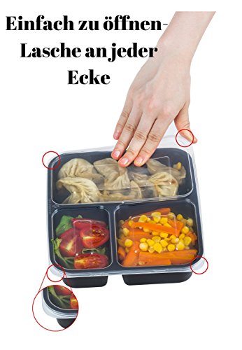 migliore soluzione Meal Prep & perfetta portions - non importa se desideri grassi, muscoli costruire o dich semplicemente alimentarsi in modo sano - La nostra fitprep Container ti aiutano a raggiungere i tuoi obiettivi. 3 scomparti separati dir agevolano la conservazione e il trasporto dei pasti e stabile. Quindi avrai le tue macro nutrienti sempre nel manico. Ogni contenitore ha una capienza di circa 1 litro in totale. Ideale per Meal Prep Bags medie e grandi dimensioni.