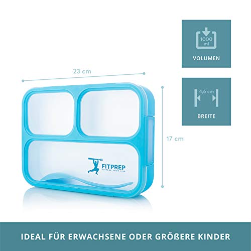 FITPREP Original Lunchbox Scatola Porta Pranzo Contenitore ermetico Bento Box 3 Scomparti + Cucchiaio Microonde BPA Free