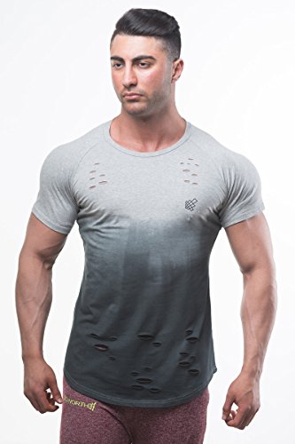 Men' s Fitted Muscle Tee Ripped Short Sleeve Workout T Shirt with holes