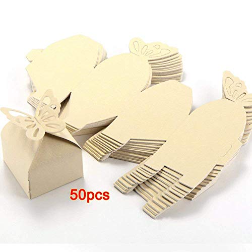 FitTek 50 Scatole in Carta Beige con Farfalla Porta Caramelle Cioccolatini Decoro Nozze