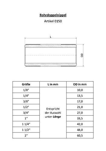 KI Fittings, 1/2 inch 40mm Doppio nipplo acciaio inossidabile V4 a raccordo filettato maschio esterno