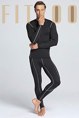 FITTOO Magliette Manica Lunga Uomo Maglia Compressione Palestra T Shirt Fitness Sport Running, Nero, XL