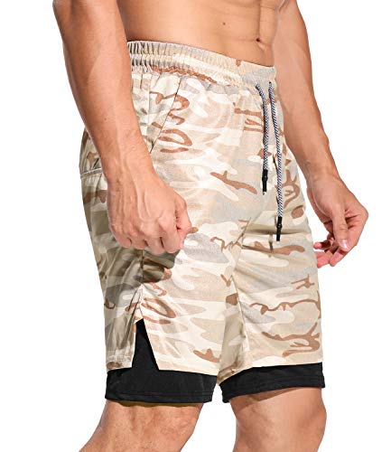 FITTOO Pantaloncini Sportivi Uomo 2 in 1 Pantaloncini da Allenamento con Tasche Pantaloncini da Bagno Asciugatura Rapida per Palestra Fitness Beach Running
