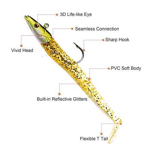 FitTrek Pesce di Gomma Set 5Pcs o 10Pcs - Esche Artificiale Affondanti per Spigola Luccio Pesca - Esche in Silicone Luminose - Esche Morbide con Ganci