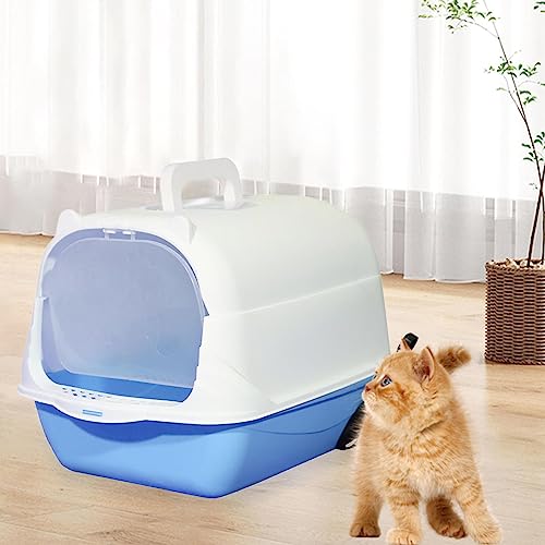 F Fityle Lettiera per gatti con cappuccio Vassoio per lettiera per animali domestici Toilette per gatti chiusa Forniture per animali domestici riutilizzabili, Blu