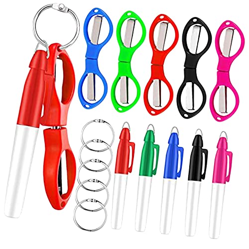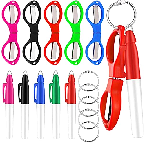 * Imballaggio incluso: 5 pennarelli indelebili colorati/neri e 5 forbici pieghevoli colorate con manico in plastica, nonché 5 anelli d'argento, un set completo di combinazioni per soddisfare le vostre esigenze quotidiane di scrittura e utilizzo,