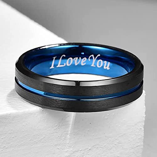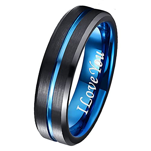 Fivavo Anello da uomo in tungsteno da 6 mm, colore nero e blu, anello di fidanzamento con bordi smussati, misura 14 (17,2) fino a 72 (22,9), carburo di tungsteno