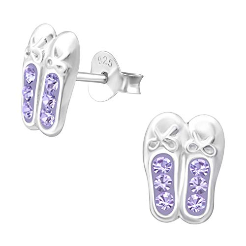 FIVE-D - Orecchini da bambina a forma di scarpa da balletto, in argento Sterling 925, con custodia e Argento, colore: viola., cod. SL-kinderohrstecker330