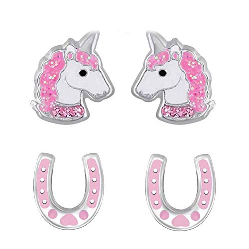 FIVE-D 2 paia di orecchini a forma di cavallo e ferro di cavallo in argento Sterling 925 e Argento, colore: Set da 8., cod. SL-Set-E10