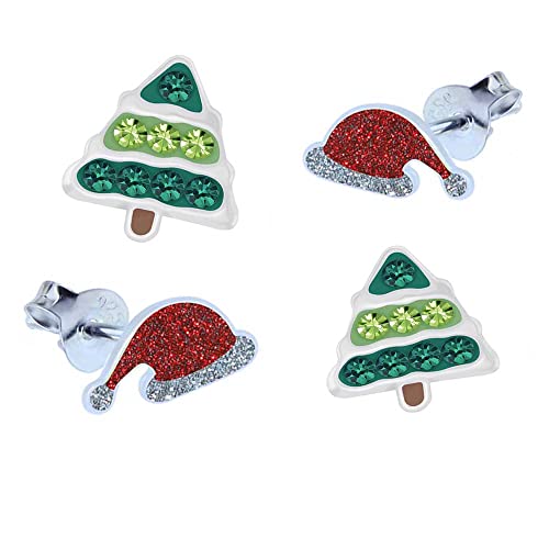 FIVE-D 2 paia di orecchini natalizi con cappello di Babbo Natale e albero di Natale, in argento Sterling 925, con custodia e Argento, colore: Set da 5, cod. SL-Set-E54a