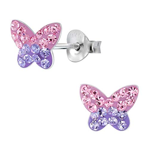 FIVE-D - Orecchini a perno a forma di farfalla, in argento Sterling 925, con custodia e Argento, colore: Rosa porpora, cod. SL-kinderkristall243-V