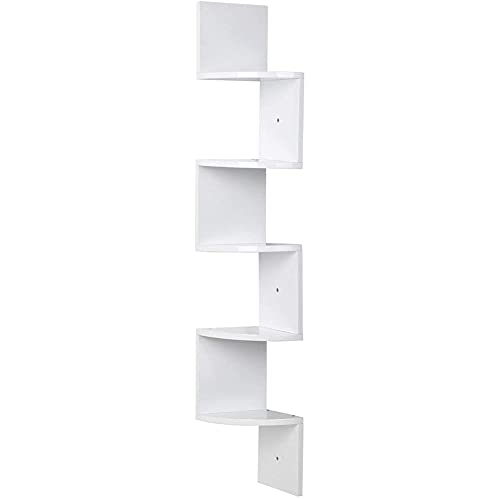 FiveFire Mensola angolare da parete a 5 livelli a zig zag, mensola a forma di angolo, con ripiano a parete, colore: bianco