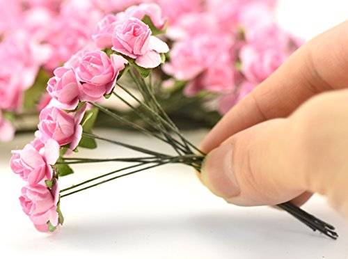 FiveSeasonStuff 144 Pezzi Miniatura Rose Artificiale Mazzo di Fiori, Ideale per Scatole di Favore di Nozze, Partito, Fai da Te (Rosa, 1.2-1.5cm)