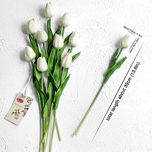 FiveSeasonStuff 10 pezzi Tocco Realistico Tulipani Artificiale Mazzo di Fiori, Ideale per Matrimoni, Sposa, Partito, Casa, Studio Décor Fai da te (Bianco)
