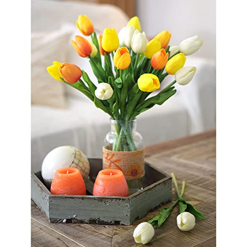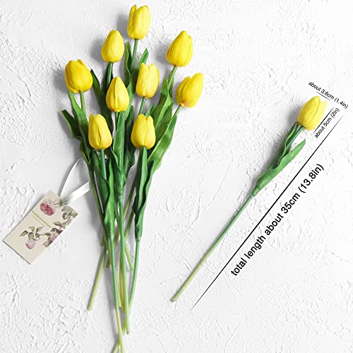 FiveSeasonStuff 10 pezzi Tocco Realistico Tulipani Artificiale Mazzo di Fiori, Ideale per Matrimoni, Sposa, Partito, Casa, Studio Décor Fai da te (Giallo)