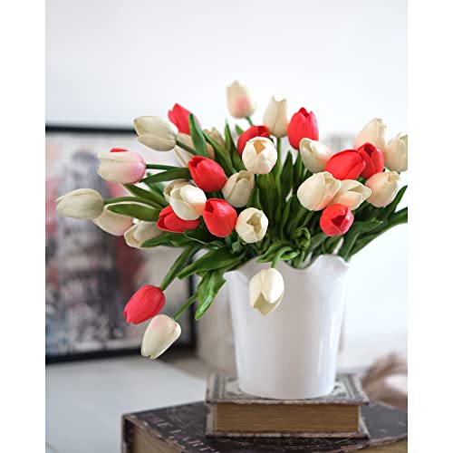 FiveSeasonStuff 10 Pezzi Tocco Realistico Tulipani Artificiale Mazzo di Fiori, Ideale per Matrimoni, Sposa, Partito, Casa, Studio Décor Fai da Te (Rosso)