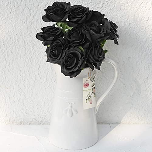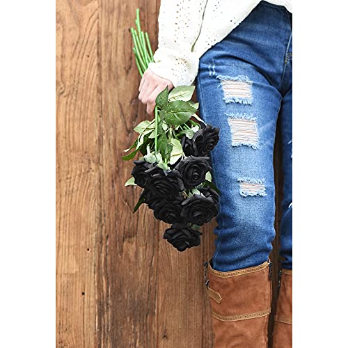 FiveSeasonStuff 10 steli di rose artificiali in seta con fiori e rose "Petals Feel and Look like Fresh Roses" bouquet di fiori composizioni floreali (nero)