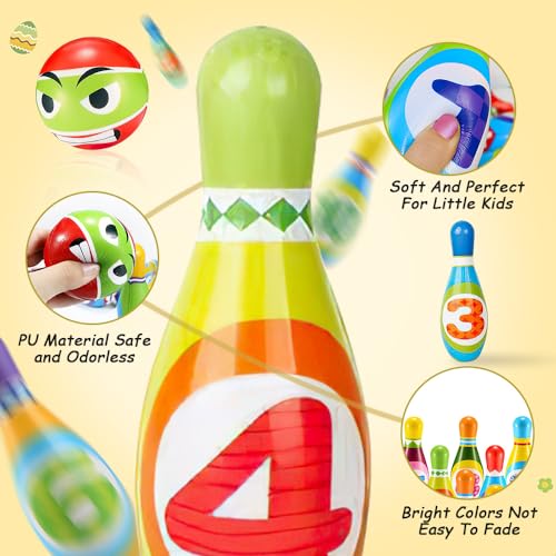 Fivtsme Set da bowling per bambini, 12 pezzi, set da bowling educativo, giocattolo a partire da 2 3 4 5 6 7 anni, ragazzi e ragazze, giochi all'aperto per bambini