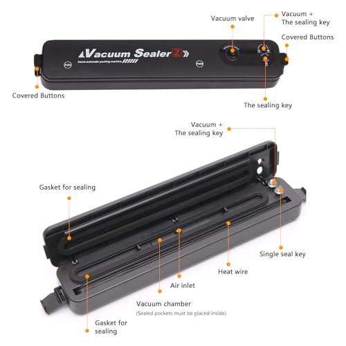 【Forte aspirazione】La forte aspirazione di macchina sottovuoto alimenti può rimuovere rapidamente l'aria in pochi secondi, sistema di aspirazione ad alta efficienza. La macchina per sottovuoto completamente automatica e compatta è facile da usare e perfetta per gli amanti della cucina. Dotato di un cavo dati USB ricaricabile, che può essere caricato in qualsiasi momento.