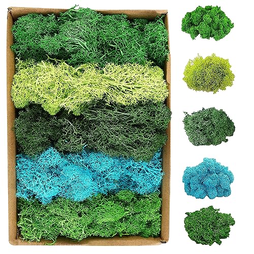 Fivtsme Muschio Artificiale, Muschio Stabilizzato, Muschio Decorativo Naturale, 200g Muschio Artificiale Decorativo Naturale, 5 Colori Diversi, per Pareti di Muschio Decorativi Modellismo e Fai da Te
