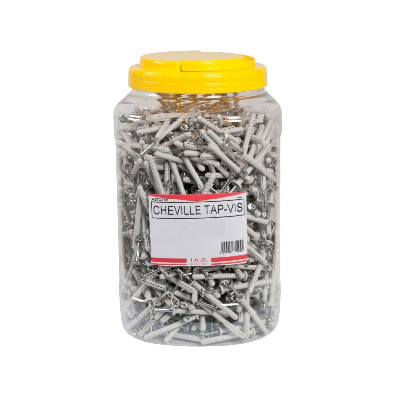 Dettagli: Tassello a percussione in nylon per materiali solidi e cavi. Installazione semplice attraverso il pezzo in lavorazione Migliore placcatura grazie all'ampio diametro della flangia Il tassello si espande quando si infila il chiodo e viene trattenuto nel foro per attrito Installazione passante facile e veloce, che riduce i tempi di installazione L'acciaio di classe 6.8 impedisce la distorsione in caso di impatto Corpo in 100% nylon, poliammide 6 (nylon ad alta resistenza) con zona ad alta espansione Caratteristiche: Diametro di foratura: 6 mm Numero di pezzi: 1500 Lunghezza della spina: 35 mm Profondità di foratura: 40 mm Spessore da fissare: 5 mm