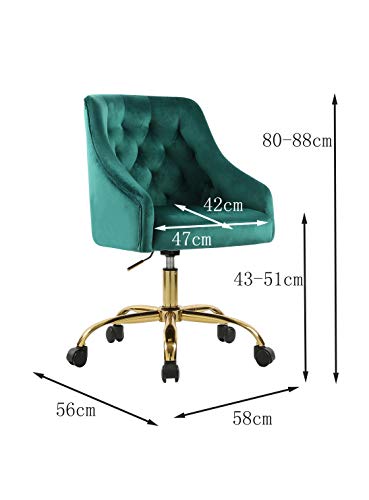 Fiximaster 6030S - Sedia girevole per computer, sala da pranzo, con rivestimento in velluto e base dorata, girevole, regolabile in altezza, colore imbottitura: verde, elegante e funzionale