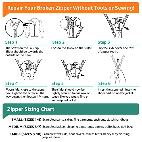 fixnzip cursore per zip di taglia piccola, taglie 1 -4,5.