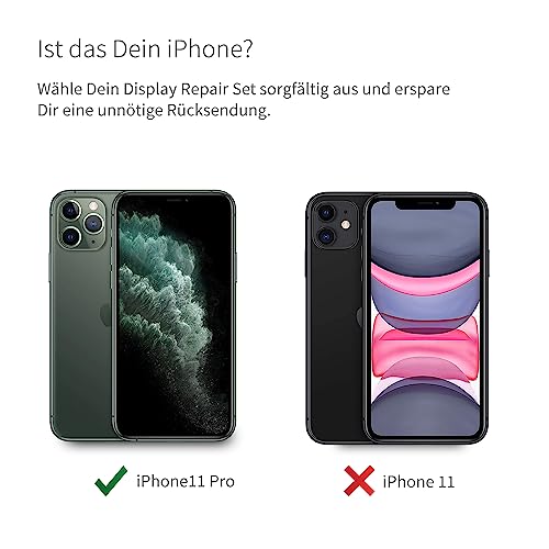 GIGA Fixxoo Set display per iPhone 11 Pro, nero, kit di riparazione completo, kit di attrezzi, schermo di ricambio | vetro Retina LCD con touch screen | qualità originale
