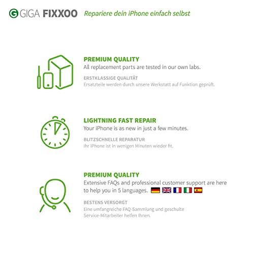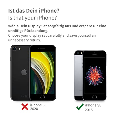 GIGA Fixxoo Schermo Singolo di Ricambio per iPhone SE Apple, Display LCD Retina ad Alta Risoluzione, Touch Screen in Vetro con Fotocamera, Altoparlante & Sensore Prossimità;
