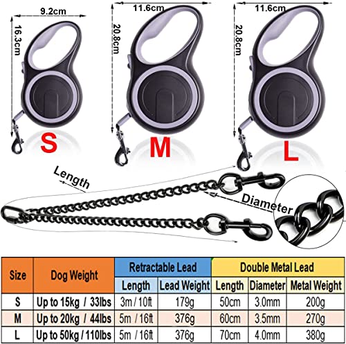 ✔ GUINZAGLI PER CANI DI MAGGIORE TAGLIA: per cani di peso diverso, abbiamo progettato 3 diverse dimensioni di guinzagli per cani retrattili con guinzaglio per cani con estremità a catena, abbastanza forti per cani fino a 110 libbre. Semplice e pratico, questo gancio per guinzaglio a catena in metallo può essere utilizzato anche con molti tipi di guinzaglio, come ad esempio: B. Guinzaglio per cani in metallo, corda in nylon e guinzaglio retrattile, ecc.