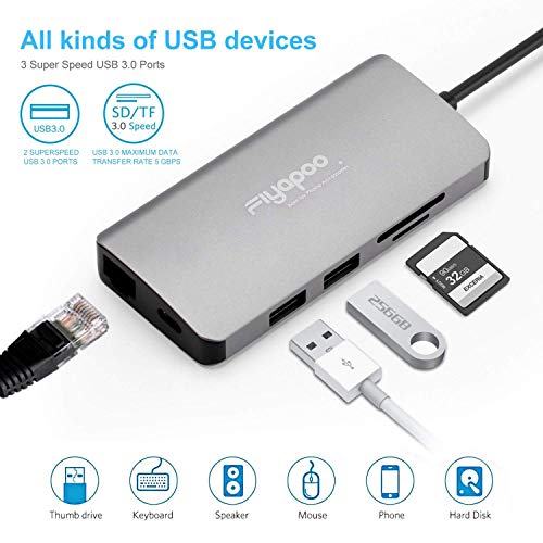 ✔ Hub USB C a più porte: Hub USB C in FIYAPOO 9 in 1 con 2 porte USB 3.0, uscita video 4K HDMI, porta Gigabit Ethernet RJ45, porta VGA 1080P, porta scheda SD / TF, jack audio da 3.5 mm, carica di tipo C funzione per l'accesso a tutti i tuoi dispositivi. Espandi i dispositivi USB e soddisfa tutte le tue esigenze quotidiane.