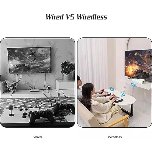 ️ 【Wireless Pandora Box】: questa console arcade Pandora è composta da due console separate con joystick. Sono collegate tramite il più recente segnale Bluetooth a 2,4 GHz. Non ci sono cavi di collegamento, quindi si può giocare molto liberamente. Sono necessarie solo due batterie AA (non incluse nella fornitura). Si tratta di un gamepad completamente wireless che funziona come il classico Pandora's Box, ma senza il cavo di collegamento.