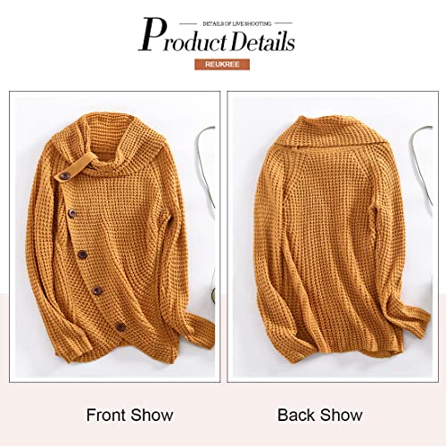 FIYOTE Maglione Donna Collo Alto Maglione Donna Casual Pullover Manica Lunga Casual Moda Tops Asimmetrico Maglione Sweater Autunnale e Invernale 1-Giallo M