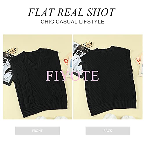 FIYOTE Maglione Donna senza Maniche Gilet in Maglia Giacca di Cotone Maglione Caldo Classico Giacca Carino Scollo a V, C Nero, XL
