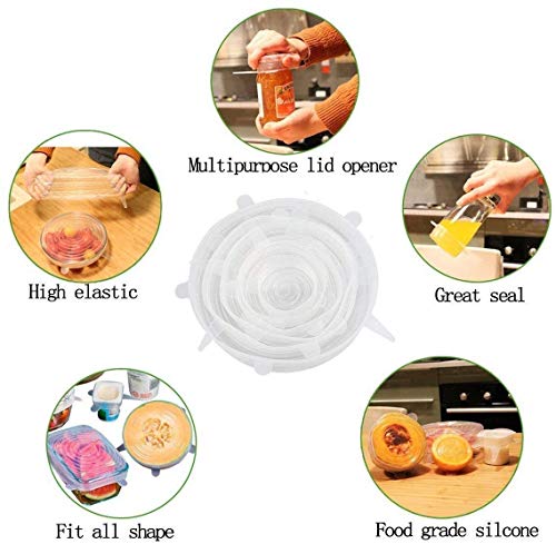 Coperchio salvafreschezza in silicone a 6 parti (le dimensioni sono 6,5 cm di diametro, 9,5 cm di diametro, 11,5 cm di diametro, 14,5 cm di diametro, 16,5 cm di diametro, 20,5 cm di diametro).