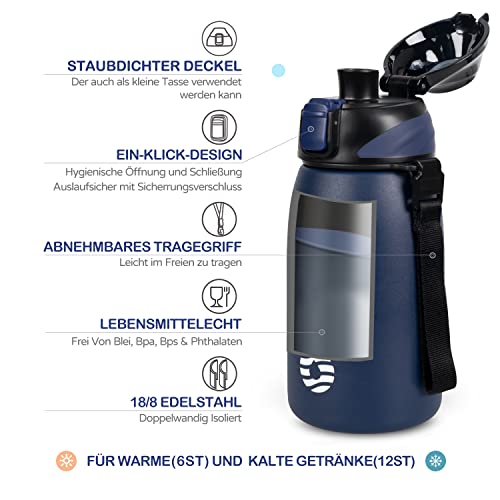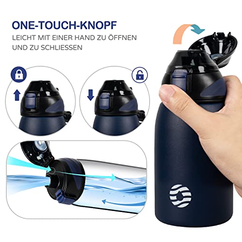 【Coperchio one-touch con blocco di sicurezza】. Design elegante e semplice, facile da usare per bambini e adulti. Questa borraccia sportiva con tracolla è un ottimo compagno per i tuoi viaggi e le tue attività all'aperto!