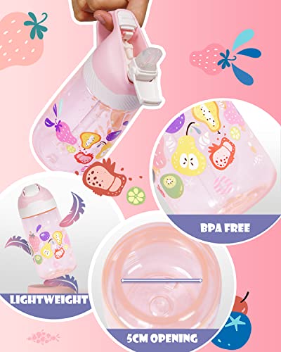 Fjbottle Bottiglia d'acqua per bambini con cannuccia, BPA libera a prova di perdite 450 ml, bottiglia di acqua sportiva in Tritan ecologica per bambini, con coperchio flip con un clic