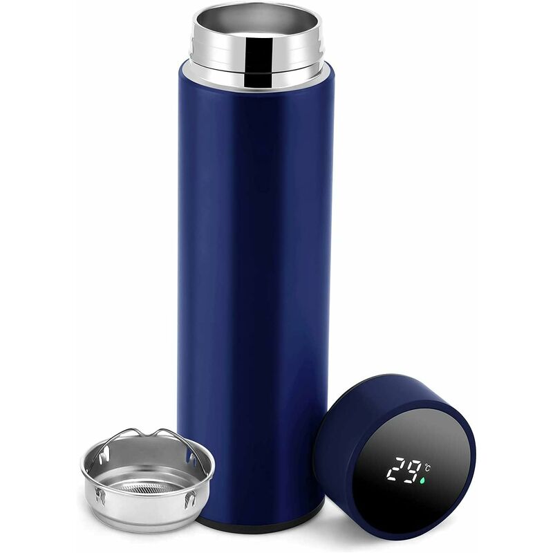 Bottiglia d'acqua coibentata da 0,5 l, senza BPA, in ACCIAIO INOX Display a LED riutilizzabile della temperatura per il mantenimento del caldo e del freddo per lo sport, la palestra, i viaggi, l'ufficio. Ideale per l'inverno (BLU): Caratteristiche: MANTIENE IL CALORE E IL FREDDO A LUNGA DURATA: Ventose sottovuoto e le tazze possono bloccare il trasferimento di calore. I nostri prodotti possono mantenere il calore liquido superiore a 42° C durante fino a ' 6 ore e raffreddamento a liquido inferiore a 10° C durante fino a ' 5 ore, che è più lungo di altre bottiglie sottovuoto. (Dopo 24 ore, 100°C di acqua, la temperatura rimane intorno ai 40°C) DESIGN MODERNO E COMPATTO che ti permette di riporre la tua borraccia termica nello zaino. ;