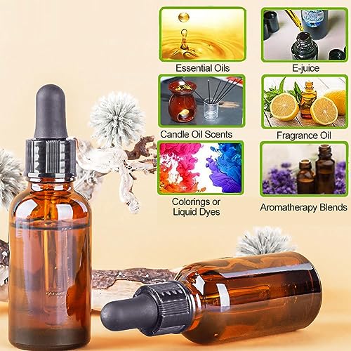 【Materiale di alta qualità】 Queste bottiglie a goccia di olio essenziale sono realizzate in robusto vetro marrone, spessi tappi di plastica nera e coperchi in silicone resistenti alla corrosione. Vetro resistente alle crepe, privo di BPA, durevole e non facile da rompere, la superficie è fine e liscia.