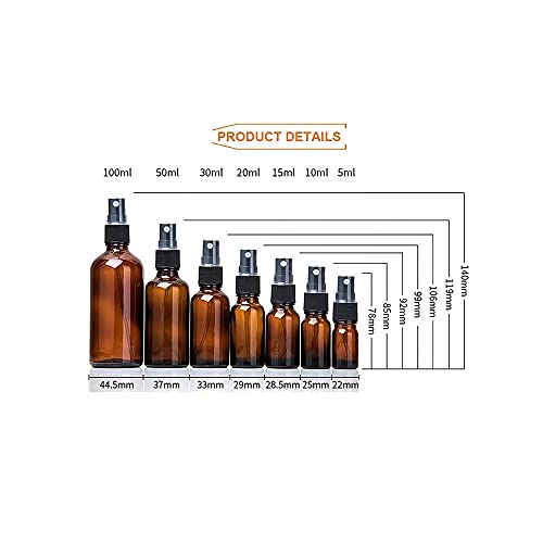 Flaconi spray in vetro ambrato da 100 ml, 50 ml, 30 ml, per oli essenziali, vuoti e nebulizzatori, contenitori per bottiglie di vetro per irrigazione cosmetica e pulizia di fiori