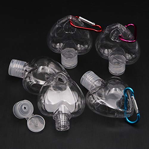 10 flaconi da viaggio a forma di cuore, vuoti, ricaricabili, portatili, a prova di perdite, in silicone, con anello portachiavi per viaggi, attività all'aperto