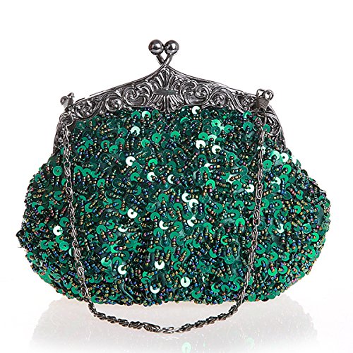 Flada Girls and Womens Rhinestone Sequins Handbag Handmade Beaded Evening Clutches Prom wedding Party Green
