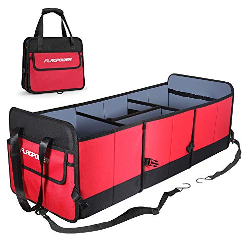 FLAGPOWER Organizer Auto Bagagliaio con Cinghie e Multi Scomparti Pieghevole Resistente Impermeabile Durevole Multitasche per Veicoli Grandi Piccoli e SUV
